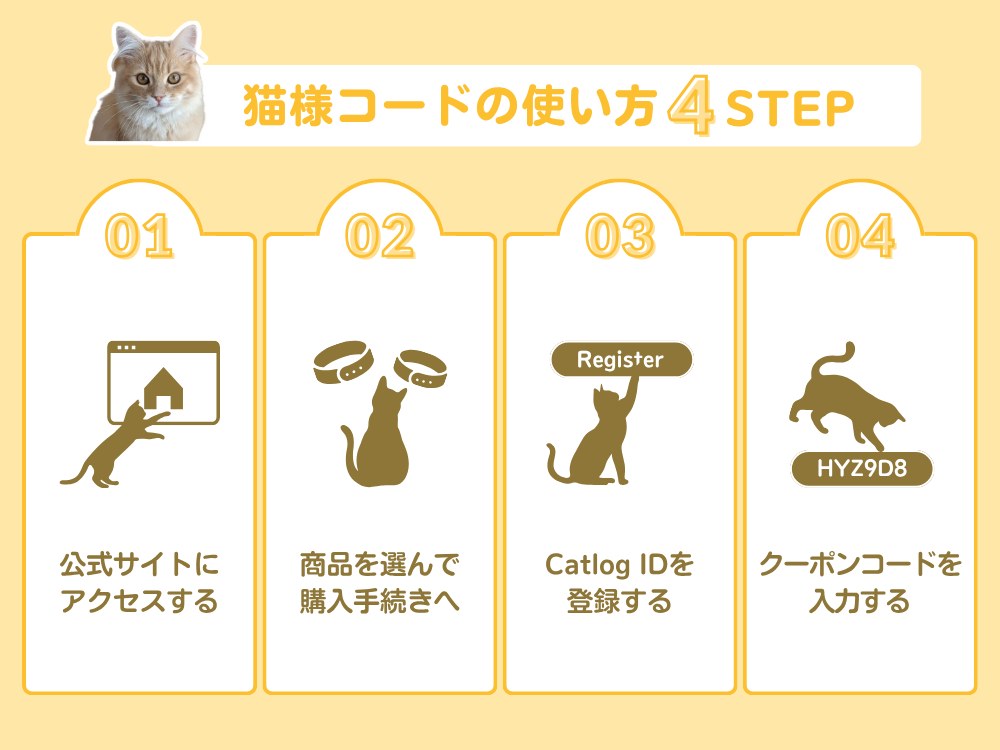 クーポン「猫様コード」を利用すれば、お得にCatlogを始めることができます